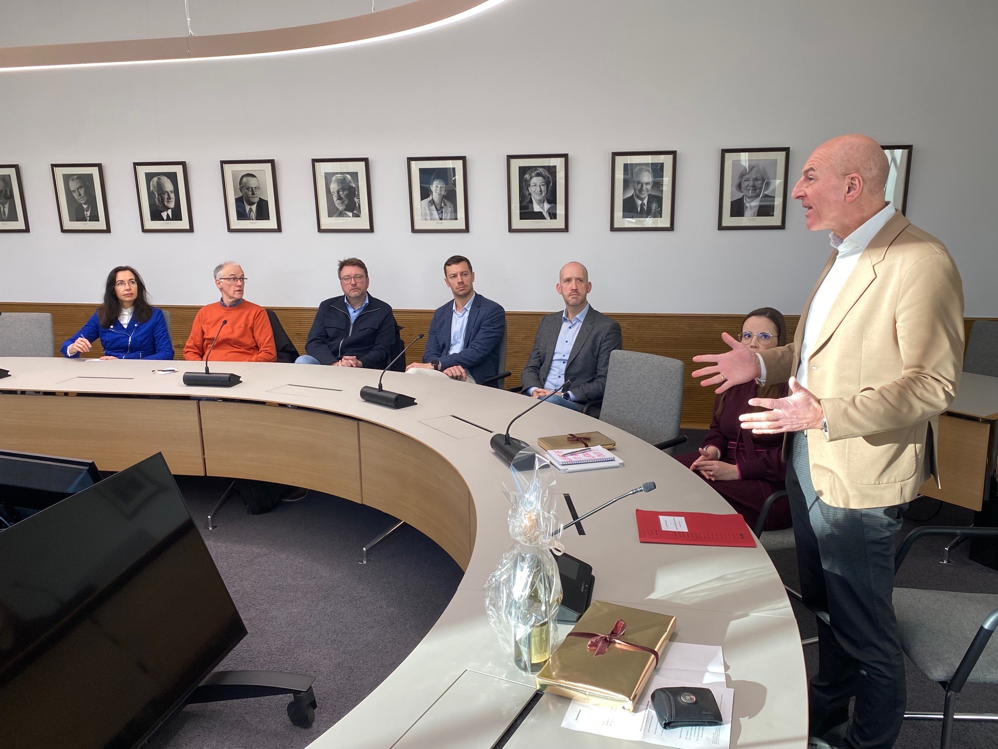 Der bisherige Vorsitzende Thomas Illerhues, Dr. Georg Lunemann sowie Wolfgang Diekmann gratulierten Sebastian Witzer zu seiner Wahl und wünschten ihm viel Erfolg für seine neue Aufgabe. Dr. Georg Lunemann und Wolfgang Diekmann dankten Thomas Illerhues ausdrücklich für seine langjährige engagierte Tätigkeit als Vorsitzender der Betriebsgruppe. Dabei hob Dr. Lunemann besondere Veranstaltungen hervor, unter anderem den Austausch mit Vertreterinnen und Vertretern der Bundespolitik wie Jens Spahn oder Christian Haase.